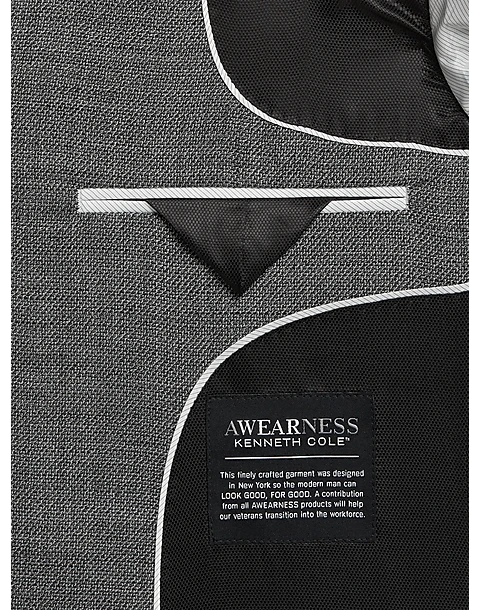 - 60% wool 37% polyester 3% spandex|Two button|Notch lapel|Side vents|Modern Fit|Awearness Kenneth Cole|