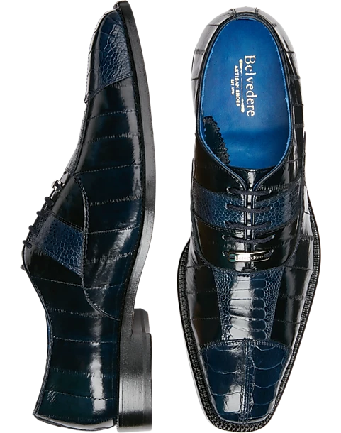 Step out on the town in these topnotch oxfords from Belvedere. Crafted with ethically sourced and sustainable ostrich and eel leather, these luxe lace ups feature a split cap toe, cushioned footbed, and leather sole for premium comfort.