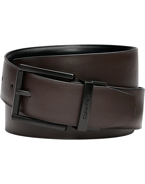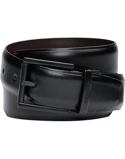 Acquire twice the style options with this chic Calvin Klein belt featuring a reversible design and CK logo along the roller buckle.