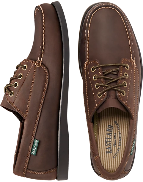 - Genuine leather upper|Moc toe|Lace up|Padded insole with Active Memory Foam|Fabric lining|Rubber sole|Eastland|