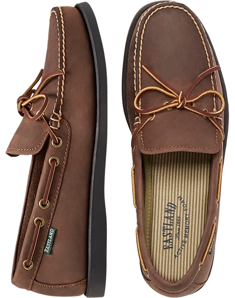 - Genuine leather upper|Moc toe|Lace up|Padded insole with Active Memory Foam|Fabric lining|Rubber sole|Eastland|