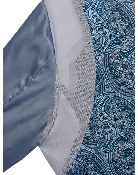 - 68% recycled polyester 20% viscose 10% polyester 2% spandex|Two button|Notch lapel|Side vents|Coordinating pieces sold separately|Skinny Fit|Egara|