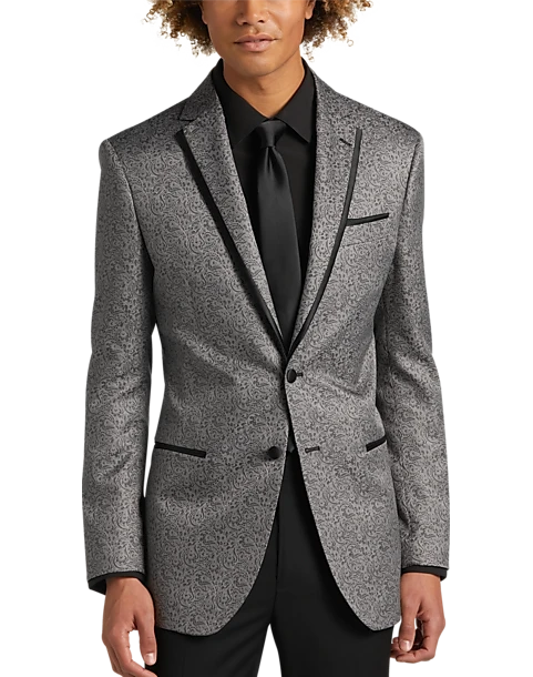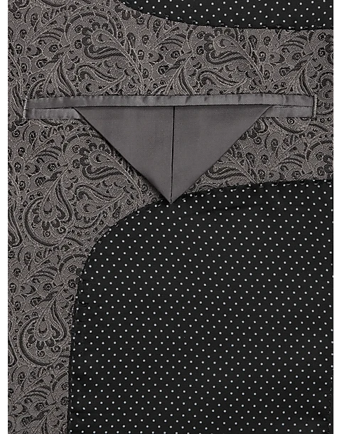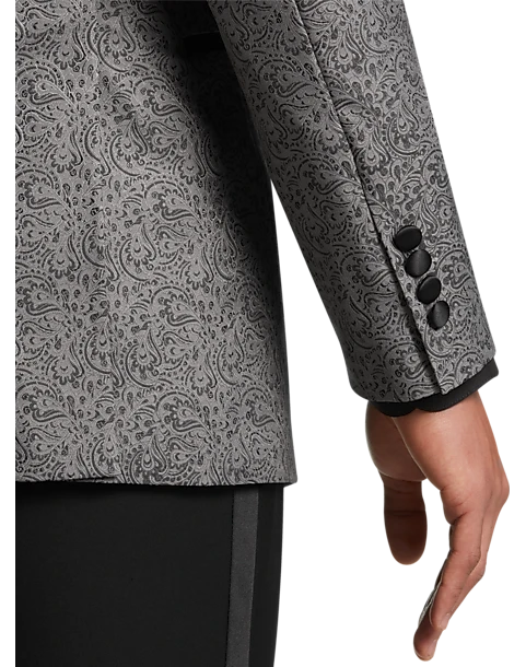 Styled for those special nights out, this dinner jacket from Egara features a satin-edge notch lapel and a tradition paisley pattern in warm gray.