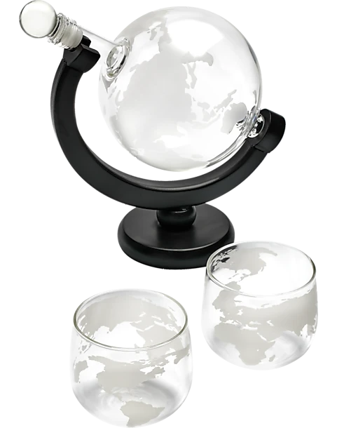 Take this decanter for a spin to aerate and open up the flavor of your favorite ports, cognacs or whiskeys. The matching glasses tie back to the frosted map motif on the decanter.