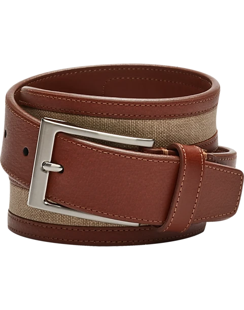 - Genuine leather and linen|Brushed silver tone metal buckle|Joseph Abboud|