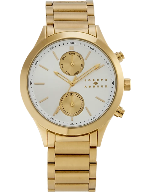 - Gold-tone finish|Stainless steel case back|Two subdials|Analog with second hand|Joseph Abboud|