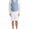 Fabric is woven with natural stretch. Flat front. Quarter top pockets. Lined to the knee. Classic Fit. Hemmed.