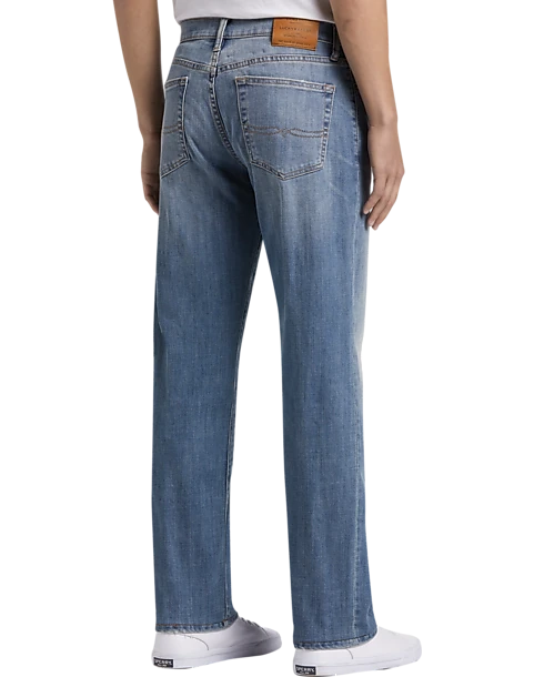 These stylish Lucky Brand Jeans have a medium wash with subtle, worn in details, a slightly tapered leg, and a Classic Fit. Their soft cotton blend fabric has a touch of stretch for comfort and an ideal fit.