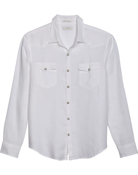 Fashioned from crisp white linen with cool, Western style, this Classic Fit sport shirt from Lucky Brand will pair well with anything from rugged denim to refined slacks.