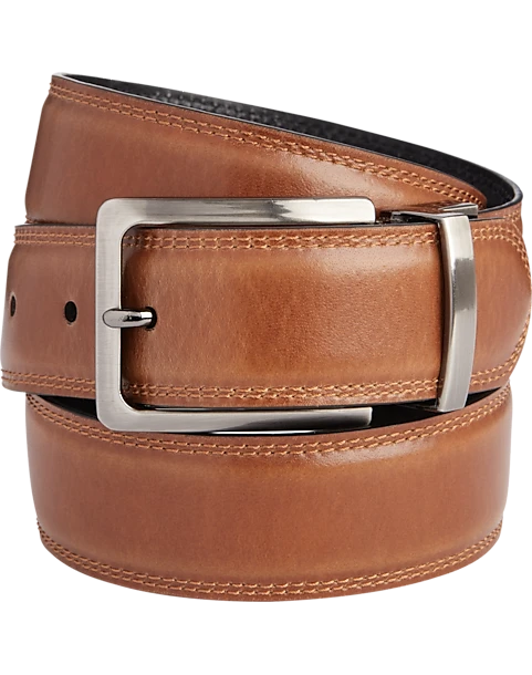 This fine leather belt is reversible from cognac brown to black for versatile dress wear.