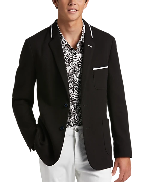 Woven from a soft cotton blend, this knit blazer from Paisley & Gray is tailored with a Slim Fit and accented with white detailing for a look that is classic, relaxed, and chic.