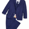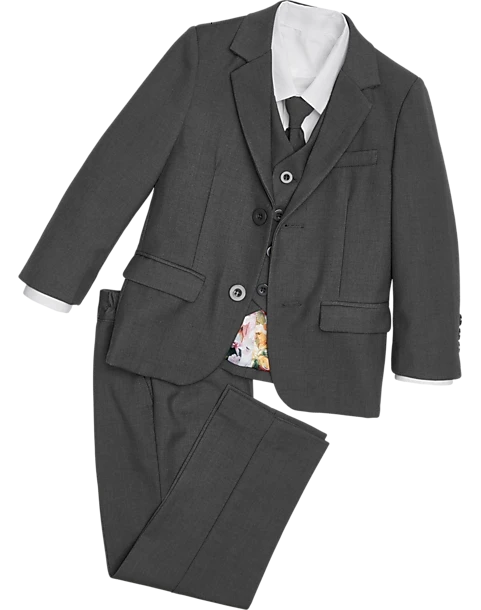 Dress your little gentleman in big guy style with this five-piece complete tuxedo set. Tailored with a Slim Fit, this stylish children’s suit is perfect for weddings, especially for ringbearers, and any other formal wear occasion. This handsome collection features a dress shirt, pre-tied tie, vest, coat, and slacks.