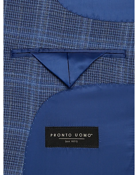 The right style and the right look are found here in this plaid sport coat from Pronto Uomo. Detailed with notch lapels, a two-button closure and side vents.
