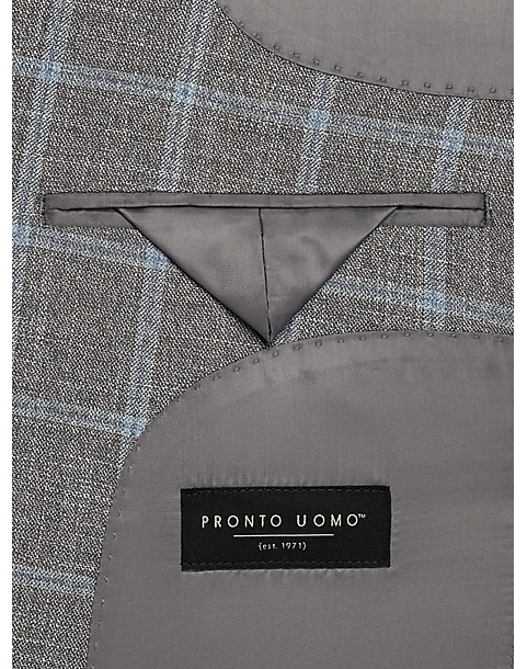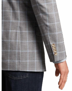 Dress up a favorite pair of pants with this Modern Fit sport coat in a handsome gray plaid. The coat features a traditional notch lapel and two-button closure.