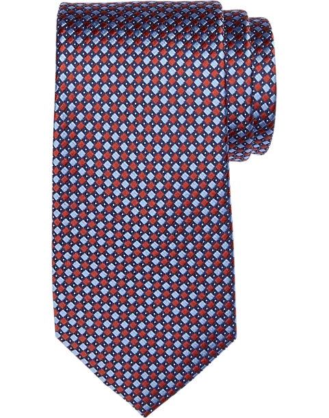 A small-scale diamond pattern in two complementary hues gives this fine silk tie the versatility of a solid color.